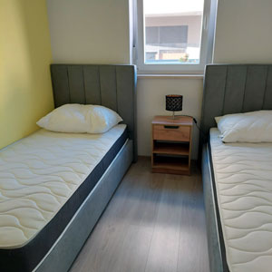 Apartment 2 (Stoja): There you have one parking spot at your disposal under the apartment building. The building has three floors and the apartment is situated on the first floor. The apartment can accomodate 4 to 6 persons and has 2 sleeping rooms, a kitchen, a dining area, a bathroom and a nice terrace. The distance to the center is 5 minutes by car, there's a huge shopping center at a 2 minute walk and the nice beaches are at a 3 minute walk.